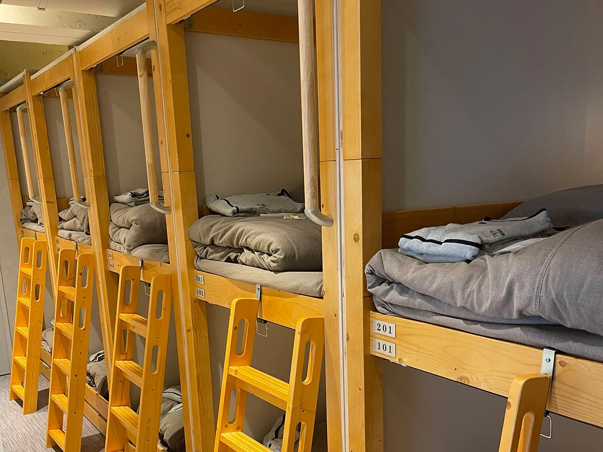 木の温もりを感じる2段ベッド型のホステルです。
